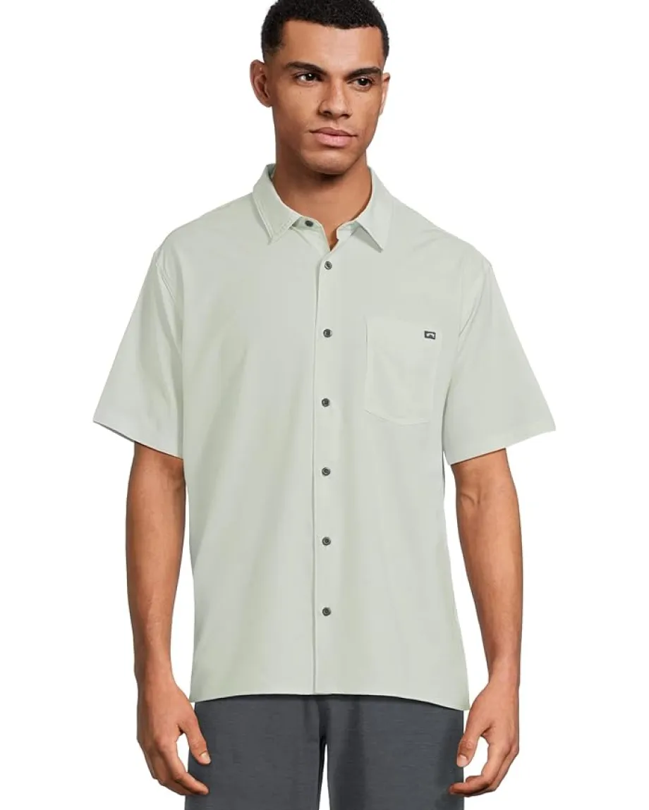 - Designed to match your everyday comfort and style, the Billabong® Surftrek Transit Short Sleeve shirt works for different occasions. Its buttoned front closure offers easy wear. This button-down shirt is styled with short sleeves, a collared neckline, and a straight hem. The polyester blend fabric takes your comfort to the next level.