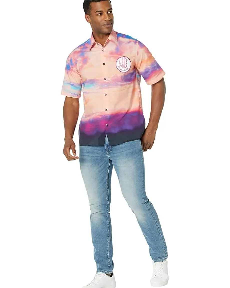 - Feel all the attention wearing the Just Cavalli® Sunset Print Shirt on your next beach vacation.