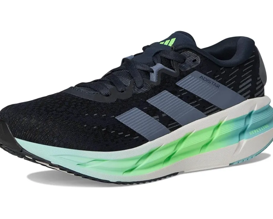 - The adidas® Adistar 4 Running Shoes deliver comfort and stability for long-distance training. These shoes provide lightweight cushioning with energy return, ensuring a smooth ride. The synthetic rubber outsole is built for high-mileage runs, offering reliable traction and support.