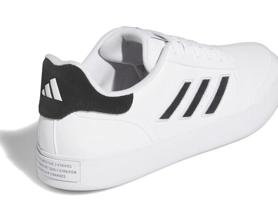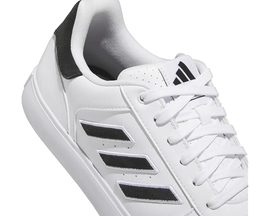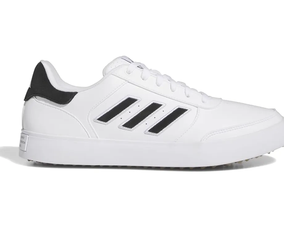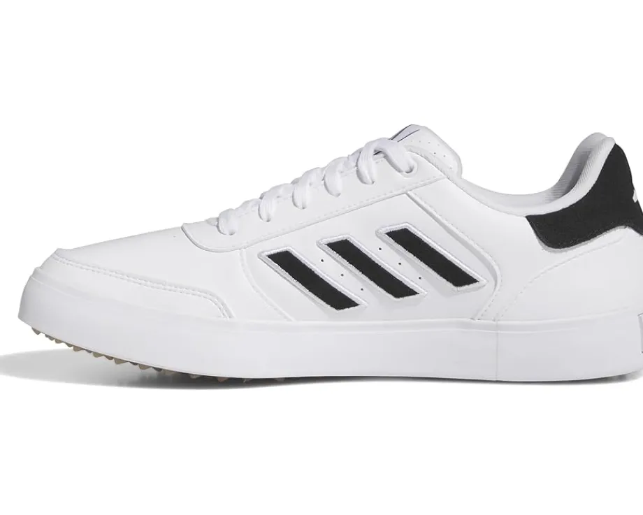 - Showcase an impactful performance on the track wearing adidas® Golf Retrocross 24 Sneakers. The sneakers are crafted with a microfiber leather upper and feature a round toe shape with lace-up closure. The contrasting adidas® logo on the tongue and signature three-stripe branding on the sides adds to the authenticity.