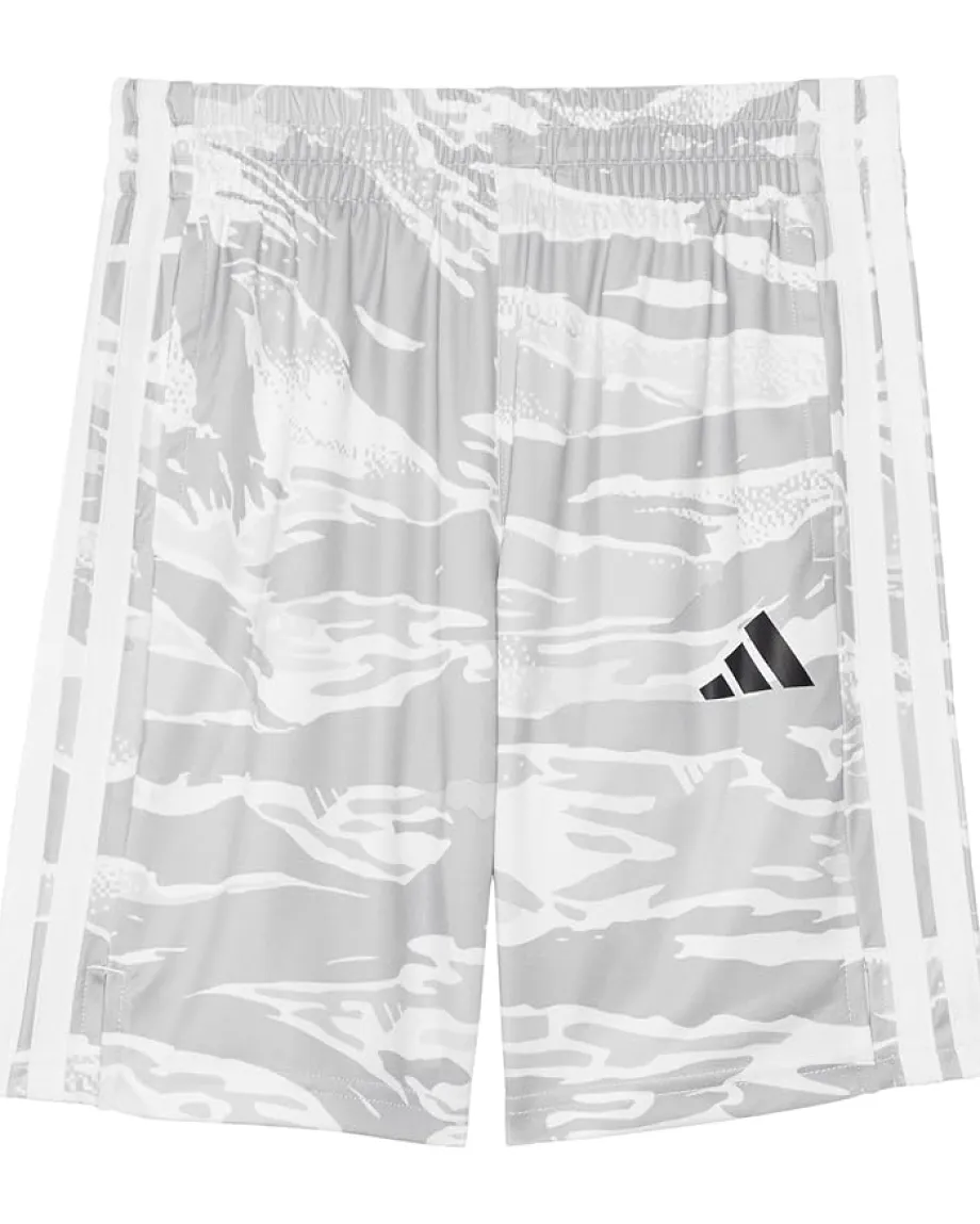 - Stand out from the crowd with your cool yet comfortable style wearing adidas® Kids AOP Tiger Camo Shorts. Crafted in an above-the-knee silhouette with a soft knit fabric, the pull-on style shorts are a must-have in your wardrobe. These feature a mid-rise elasticated waistband, two seamed pockets on the front, signature three-stripe detail, an allover camouflage print, and an adidas® logo detail on the front.