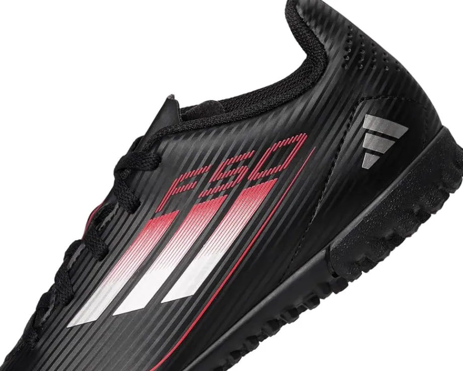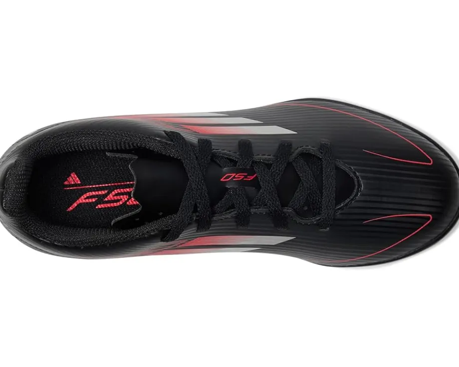 - Give your little soccer star the speed and control they need by sporting adidas® Kids F50 Club Turf Soccer Cleats. Designed for unstoppable play, these cleats feature a durable rubber upper, insole, and outsole for superior traction on turf surfaces. The natural rubber lining delivers comfort and breathability, while the lace-up closure ensures a secure, locked-in fit for every sprint, pass, and goal.