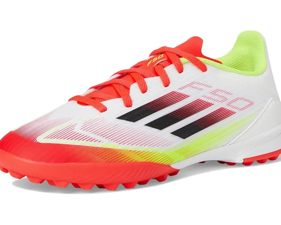 - Unleash your little superstar’s potential choosing the adidas® Kids F50 League Turf Soccer Cleats. The rubber upper provides unparalleled traction and ball control, while the natural rubber lining cushions every step for all-day comfort on the field. With a perforated tongue for breathability and a regular fit for a secure, personalized feel, these cleats are the secret weapon your little soccer star needs to dominate the turf.