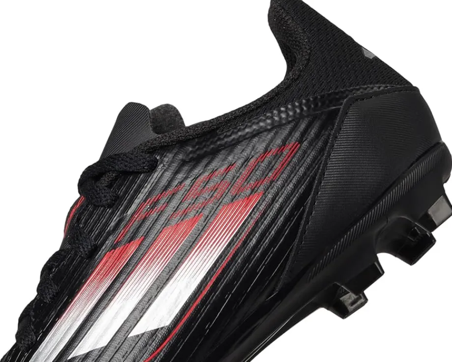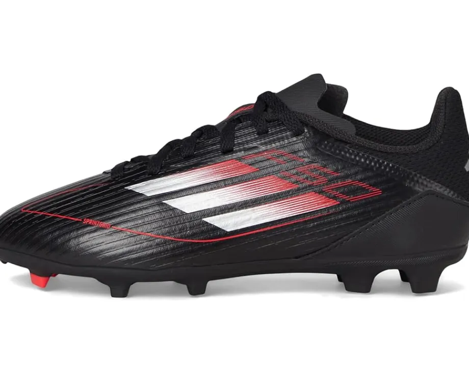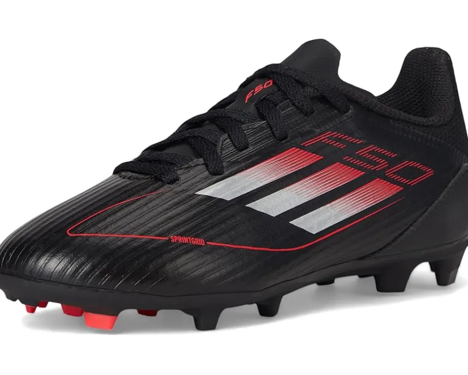 - The adidas® Kids F50 League Firm Ground/Multi Ground Soccer Cleats are built for young game-changers who demand explosive speed and unstoppable agility. The Sprintgrid print on the forefoot delivers a sleek, high-energy look, while the Sprintplate 360 outsole fuels dynamic propulsion across firm and multi-ground surfaces. A durable rubber upper and insole provide a snug yet breathable fit, while the synthetic rubber lining and outsole ensure stability with every pivot and strike. Finished with a secure lace-up closure for locked-in confidence, these cleats are designed to dominate.