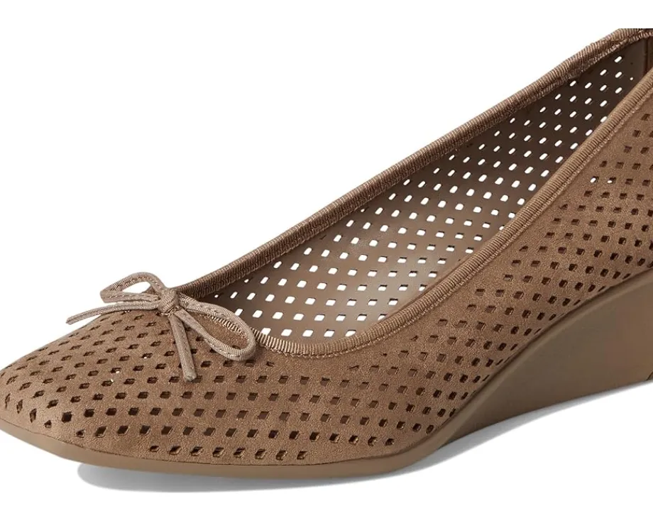 - Step out with a marvelous yet chic flair wearing the Anne Klein® Winslet. The slip-on footwear features polyurethane upper with allover breathable perforations and sleek wedge heel.