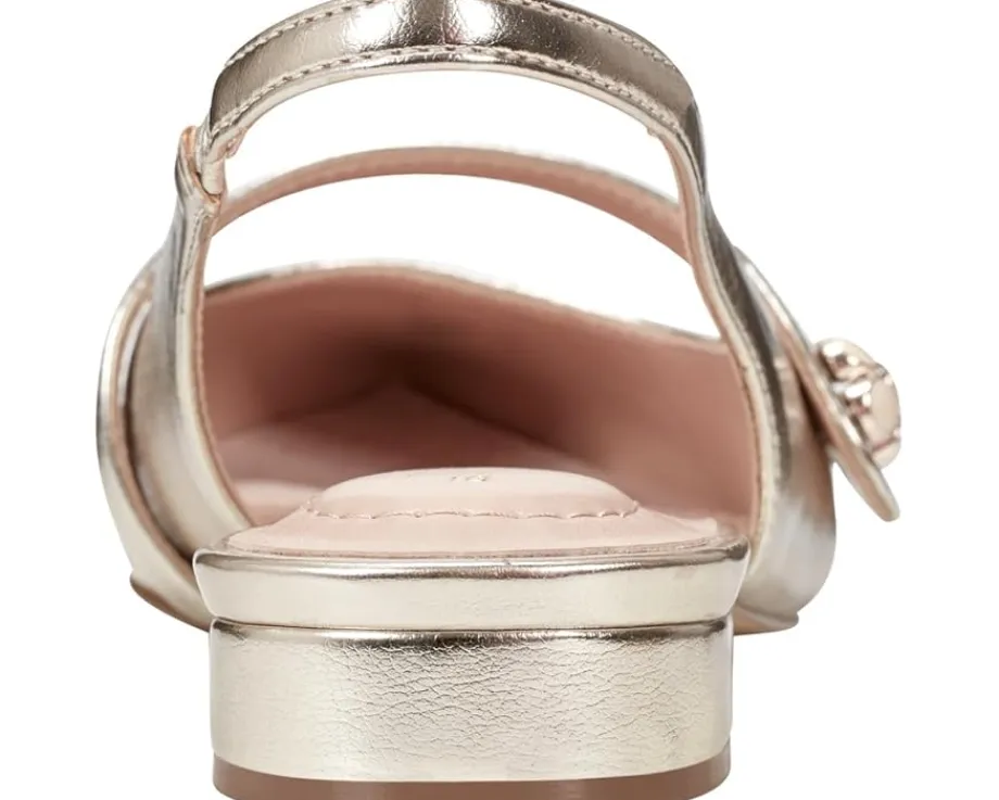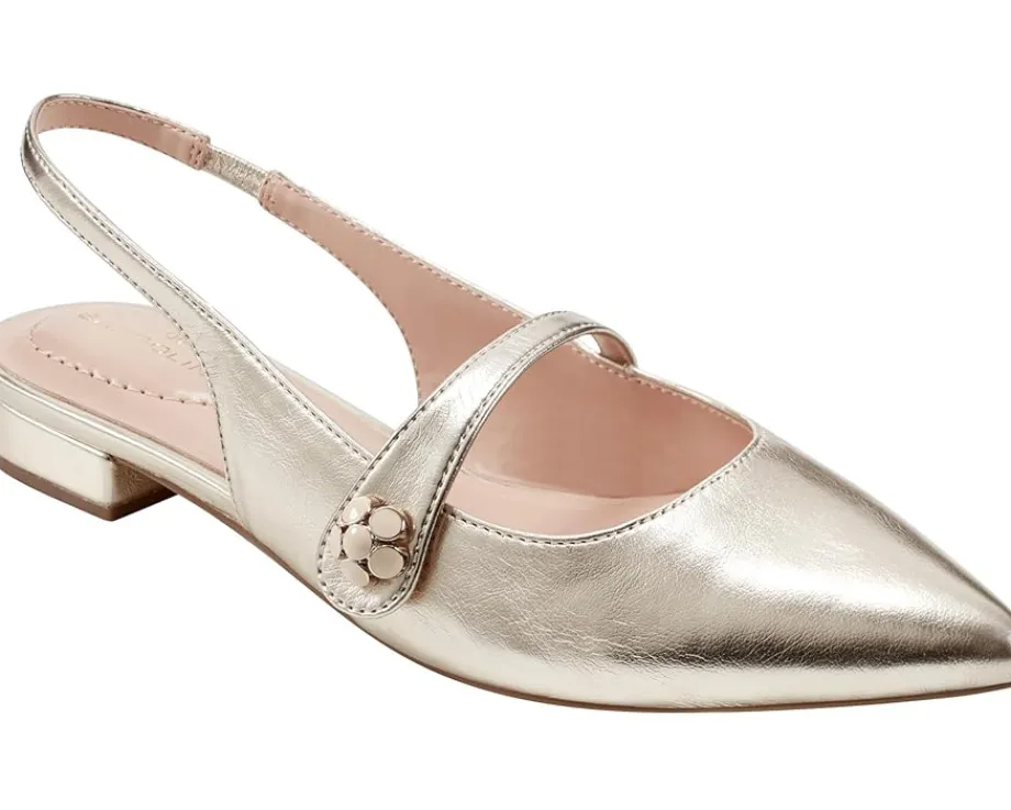 - Modern minimalism in the Bandolino® Aubriana dress flats. Effortlessly chic with a sleek pointy toe and elegant slip-on closure, these flats elevate any ensemble. Crafted with a faux leather upper and soft man-made lining, they ensure comfort with a foam footbed and insole. The EVA outsole offers durability and traction for all-day wear. Adorned with a stunning flower ornament and designed with a block heel and slingback, they’re perfect for every occasion.