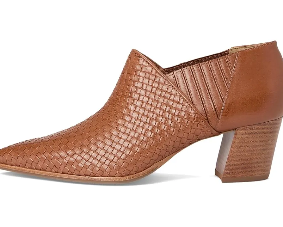 - Question everything? This Bernardo® Famous low-ankle bootie challenges the notion that comfort and elegance are contradictory, thanks to its handcrafted woven leather upper, block heel, and elasticized side panel for wearable ease.