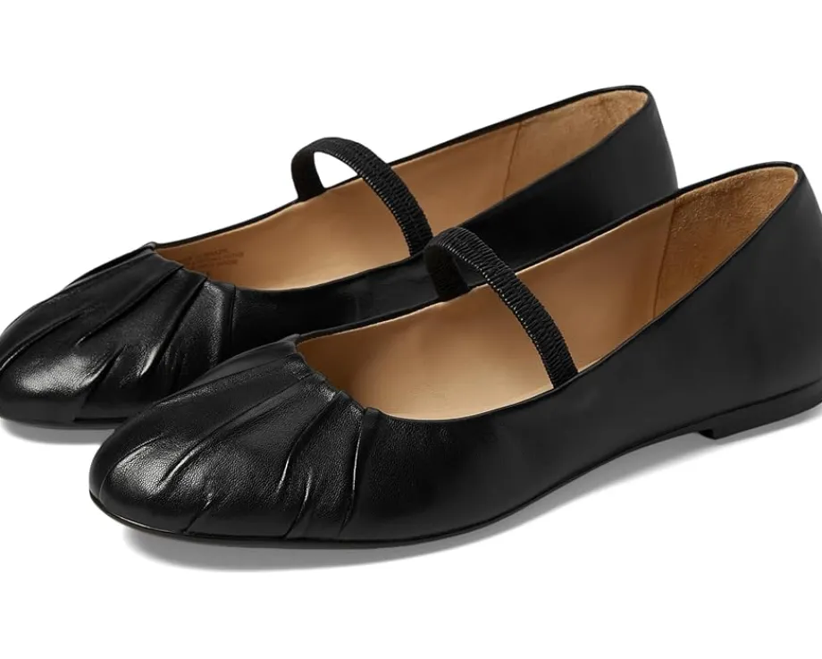 - The draped front details make this low-top Bernardo® Savona Flats a symphony of charm and finesse. With an almond toe silhouette, the pull-on footwear features soft vegetable re-tanned leather upper construction and elasticized midway strap that molds to the shape of your foot for extra comfort.