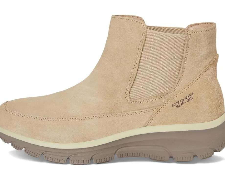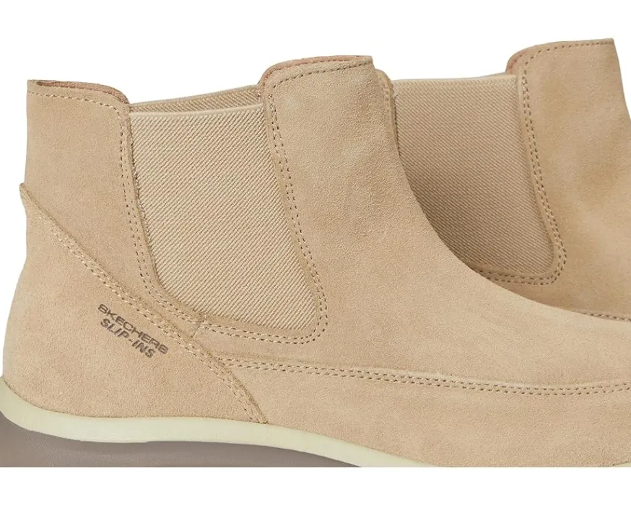 - The perfect Chelsea boot meets the SKECHERS® Easy Going – Casual Icon Hands Free Slip-ins®. Soft suede upper in a low ankle-height slip-on casual Chelsea bootie and Skechers Air-Cooled Memory Foam® cushioned comfort insole. Designed with our Heel Pillow®, this cold-weather boot features a 3M® Scotchgard® treated upper and chenille lining.