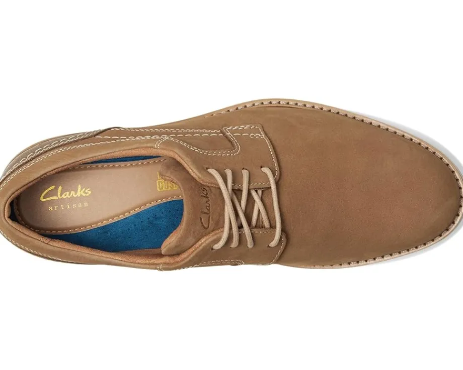 - Premium craftsmanship meets unparalleled comfort in the Clarks® Monahan Plain. Featuring a luxurious sand nubuck upper and authentic lacing for a secure, personalized fit, these shoes are the perfect blend of sophistication and ease. The contoured EVA footbed delivers lasting cushioning, while the lightweight EVA midsole ensures superior underfoot comfort with every step. Enhanced by a breathable mesh lining and durable rubber insole and outsole, these shoes are designed to keep you moving in comfort and style.