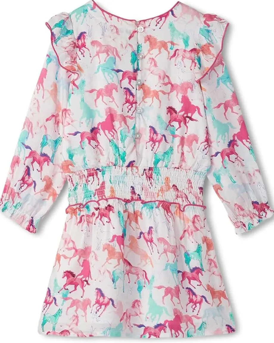 - The fairy tale Hatley® Kids Photo Print Horses Smocked Waist Dress features enchanting details for your little dreamer. Say goodbye to morning wardrobe dilemmas thanks to this drop waist tulle dress! Featuring a round neckline and a skirt with two layers of whimsical tulle, they’ll want to wear this one over and over (and over again). This crew neck, half sleeve dress features rib detailing and rolled edge at neckline and sleeves. This dress has tulle skirt with dropped waist and hits below the knee.