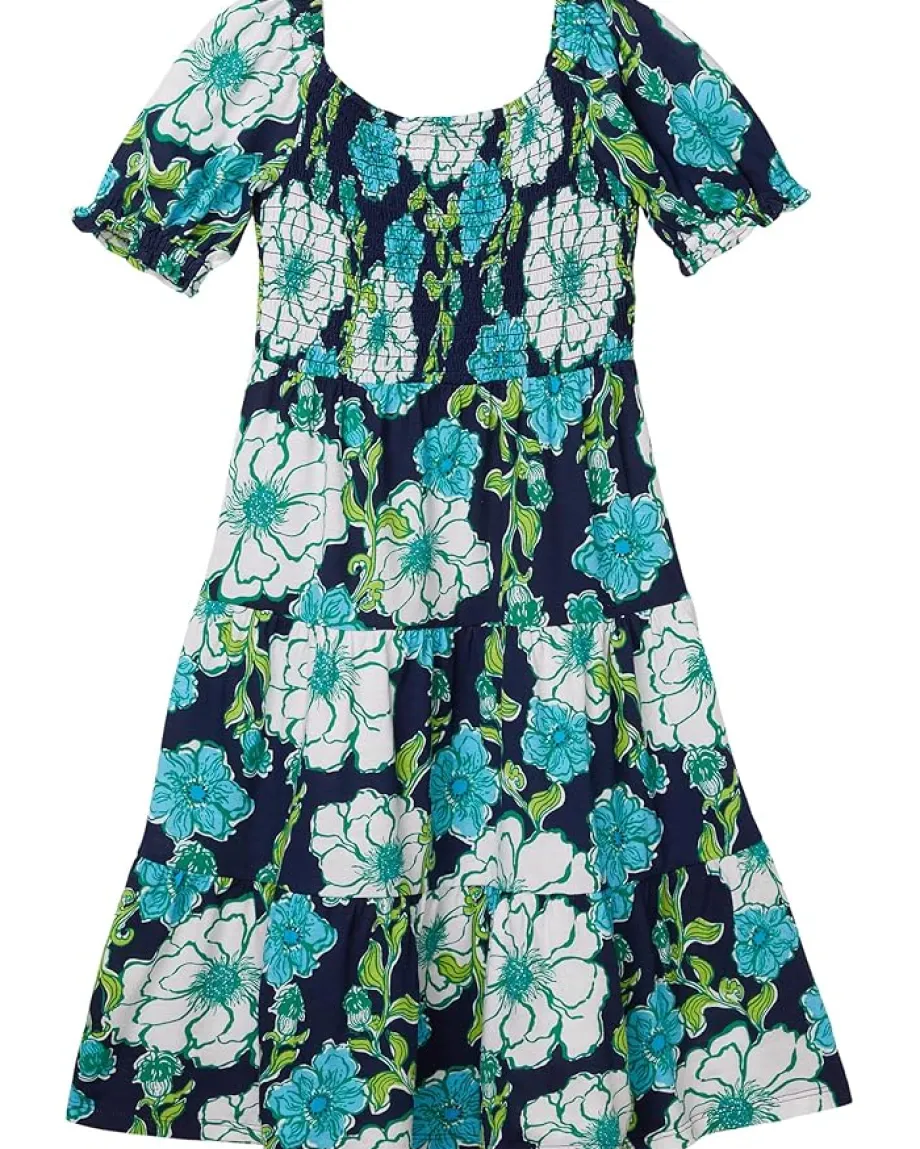 - Dress your little one for a fun party in the Lilly Pulitzer® Kids Mini Jilly Sleeved Midi Dress. Featuring round neckline, and short sleeves. This A-line silhouette dress has smocked bodice for a perfect fit.