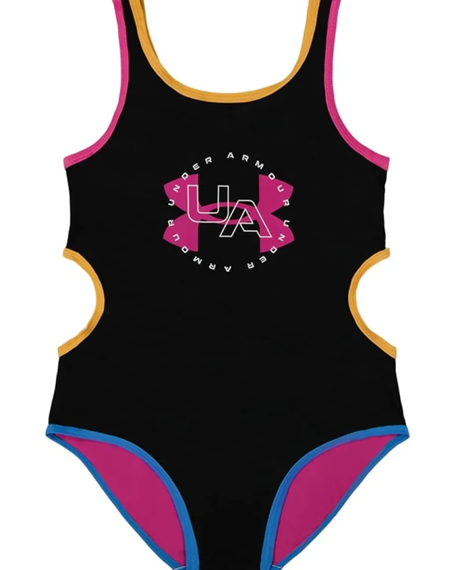 - Experience sun protection and active coverage all-day long as you are enjoying your day at the beach wearing Under Armour® Kids Core Block One-Piece Swimsuit. The swimsuit features tank straps, scoop neck with deep back design, side cutouts, and a streamlined fit. The lightweight 4-way stretch fabrication with quick-drying quality and built-in UPF 30 sun protection add to the comfort.