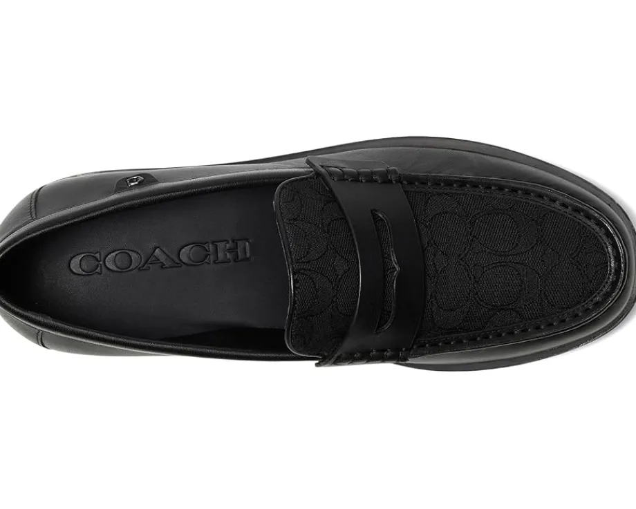 - Sleek and polished. Complement your effortless style from morning to night in the COACH™ Reagan Loafer. These slip-on style loafers feature a round toe silhouette, crafted from a smooth leather upper with a penny slot on the vamp, man-made leather lining and a leather footbed.