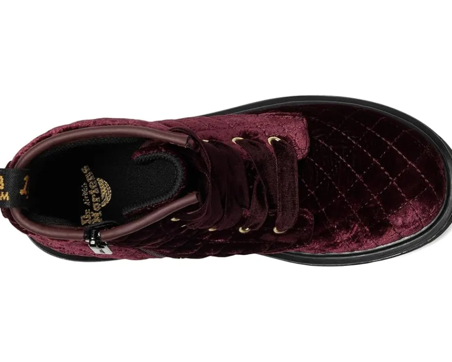 - The Dr. Martens® Kid’s Collection 1460 Pascal Junior Boots are scaled down for young rebels in the making. Made from high-shine patent lamper leather upper with a cool decayed floral pattern and flat ribbon laces, these boots are durable and stylish. They feature an easy-on, easy-off inner ankle zip closure and are made with an extra-flexible cemented sole construction for growing feet. The iconic and comfortable Dr. Martens® air-cushioned sole, with iconic yellow welt stitch, offers premium comfort and the scripted heel-loop adds authenticity.