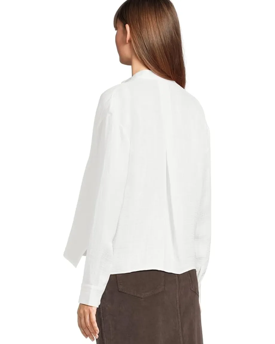 - Basic yet classy, the Eileen Fisher® Mandarin Collar Top is perfect for evening dinner. Lightweight with puckery texture. A silk linen blend we brought back from the archives, with a woven square motif. This classic fit top features long sleeves, collared neckline, and pull-on styel.