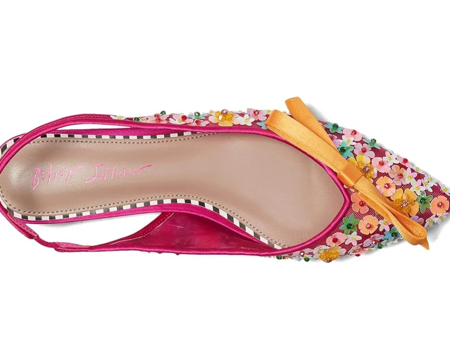 - Slip into floral fun with the Blue™ by Betsey Johnson Laylah shoes. These unique and stylish flat shoes will add a playful flair to any outfit, featuring bow accents for a fun and sweet touch. They are made of a PVC upper and rubber insole. The slingback strap ensures a secure fit.