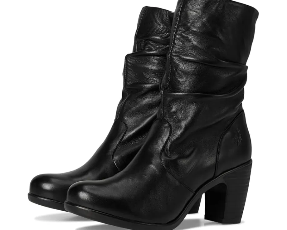 - The supple, ruched leather or suede uppers have an inside zipper making this FLY LONDON® KLEI152FLY mid-calf boot easy to get on and off. Its heel-to-toe foam insole, rounded toe shape, and flexible rubber outsole all work together to surround your feet in comfort.