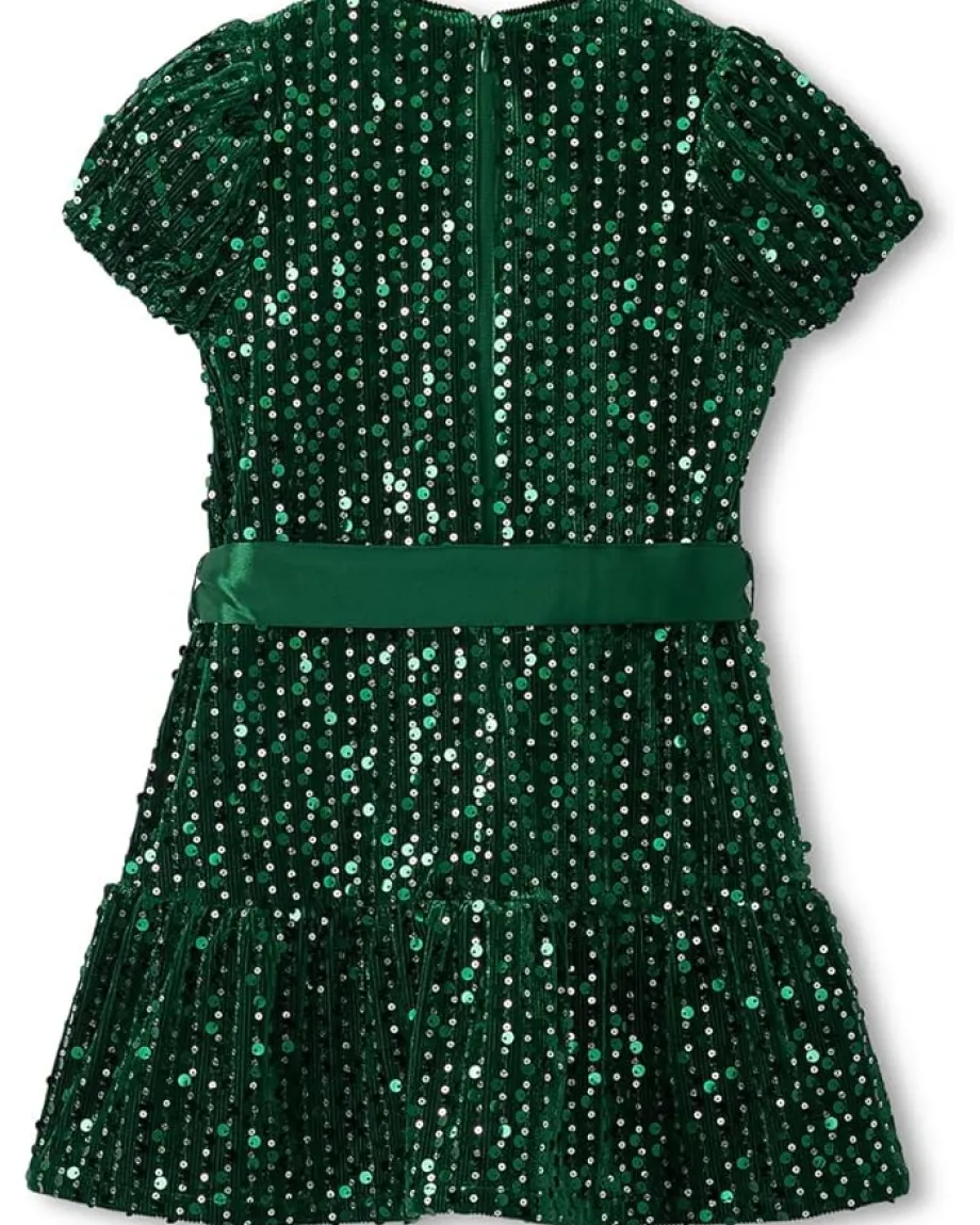 - She’ll look oh-so-chic at the next special occasion in the Hatley® Kids Velvet Dress. Featuring a round neckline with short sleeves, allover sequin detailing, back zipper closure, and a self-tie belt.