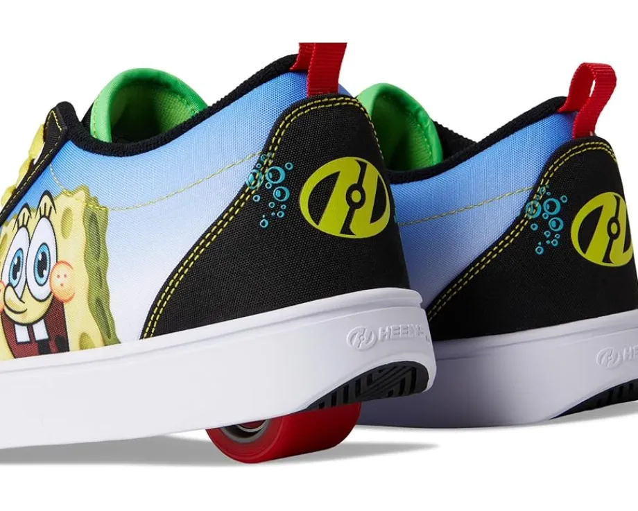 - SpongeBob and Heelys® bring you this unique collaboration! Constructed from a canvas upper, these shoes offer a lace-up closure in a round toe silhouette, pull tab in back for easy entry and a padded tongue and collar for added comfort.