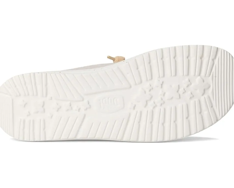 - The Hey Dude® Wendy Wool Cozy shoes are slip-on sneakers that are ready to roam. Their easy-on elastic laces offer a secure fit, while the polyester upper features a Flex & Fold design that supports healthy feet with their unique shape, giving complete freedom of movement. They are made of an EVA insole and a polyester lining.