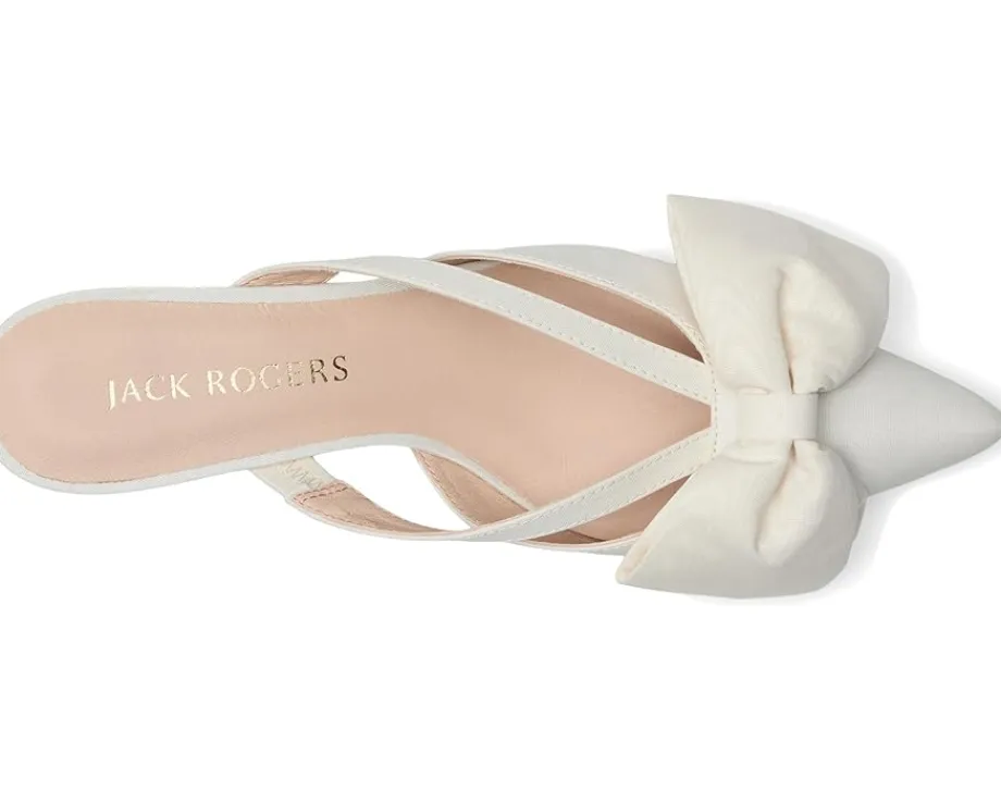 - Step into elegance wearing the Jack Rogers® Cynthia Bow Mule, a show-stopping choice for both day and night. Crafted from leather, lining, and foam insole, this pump guarantees compliments. Featuring pointed toe, open back design, slip-on style, bow detailing on the vamp, cushioned footbed, and low stiletto heel. Whether you’re heading to the office or out for an evening soiree, it ensures you’ll shine in effortless style.