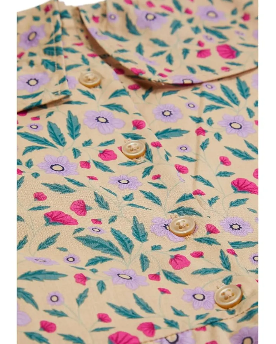 - Bloom in elegance with every twirl! The Janie and Jack® Tan Floral Dress is a perfect blend of charm and comfort. Featuring a classic V-neck and a delicate button with zippered closure on the back, this sleeveless dress is designed for effortless wear. The soft, breathable fabric allows for all-day comfort, while the above-the-knee length adds a playful touch to any occasion. Adorned with a subtle floral print, this dress is ideal for sunny days or special events, offering a timeless style that lets your little one shine with grace.