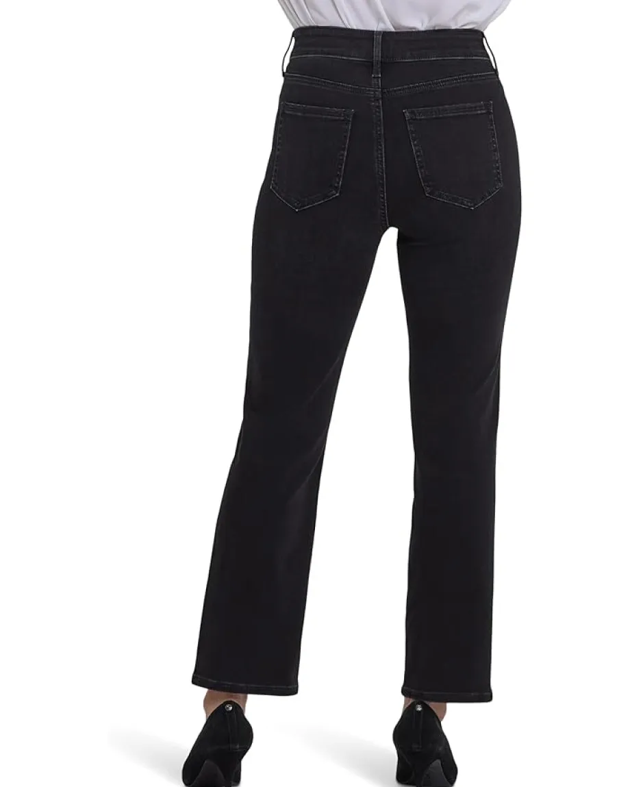 - The NYDJ® Marilyn Ankle jeans, in a versatile straight-leg silhouette that hits perfectly at the ankle, pair well with everything. These denim jeans feature an even higher rise and a slightly shorter inseam than the typical Marilyn straight jeans for a flattering, on-trend look. They are made with Lift Tuck Technology to flatten in the front and flatter curves in the back. Comfortable and stretchable, these high-rise jeans are finished with a zip-fly, buttoned closure, and belt loops.