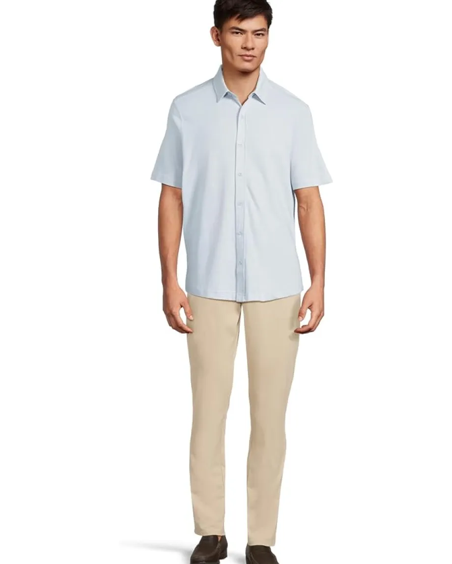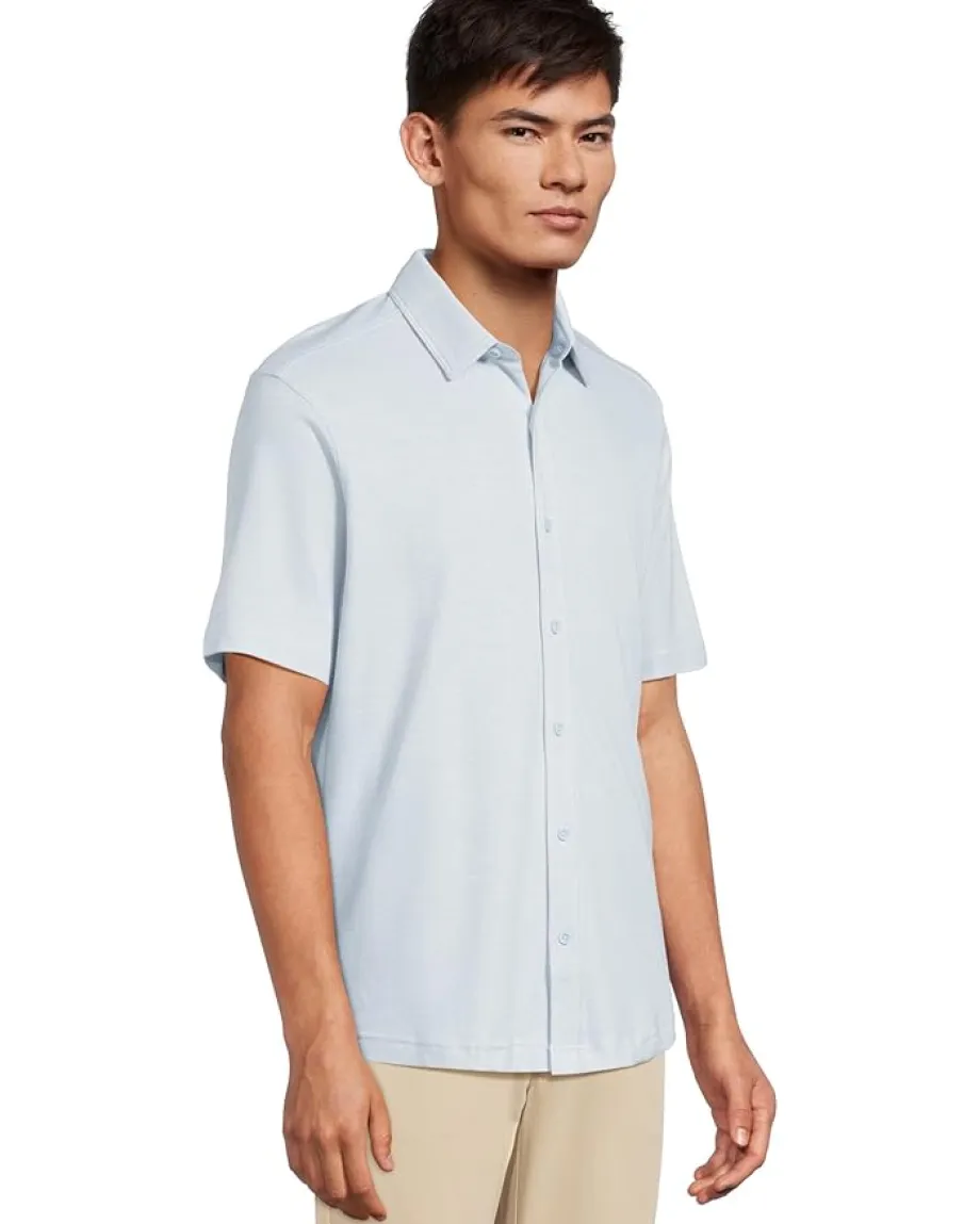 - Crafted in an ultra-soft, lightweight, and breathable fabric, the Johnston & Murphy® Sleeve J&M Flex Birdseye Button Front Shirt offers the perfect blend of style and comfort. The four-way stretch construction offers added ease. The collared shirt features a full front-button closure, short sleeves, and a shirttail hem.