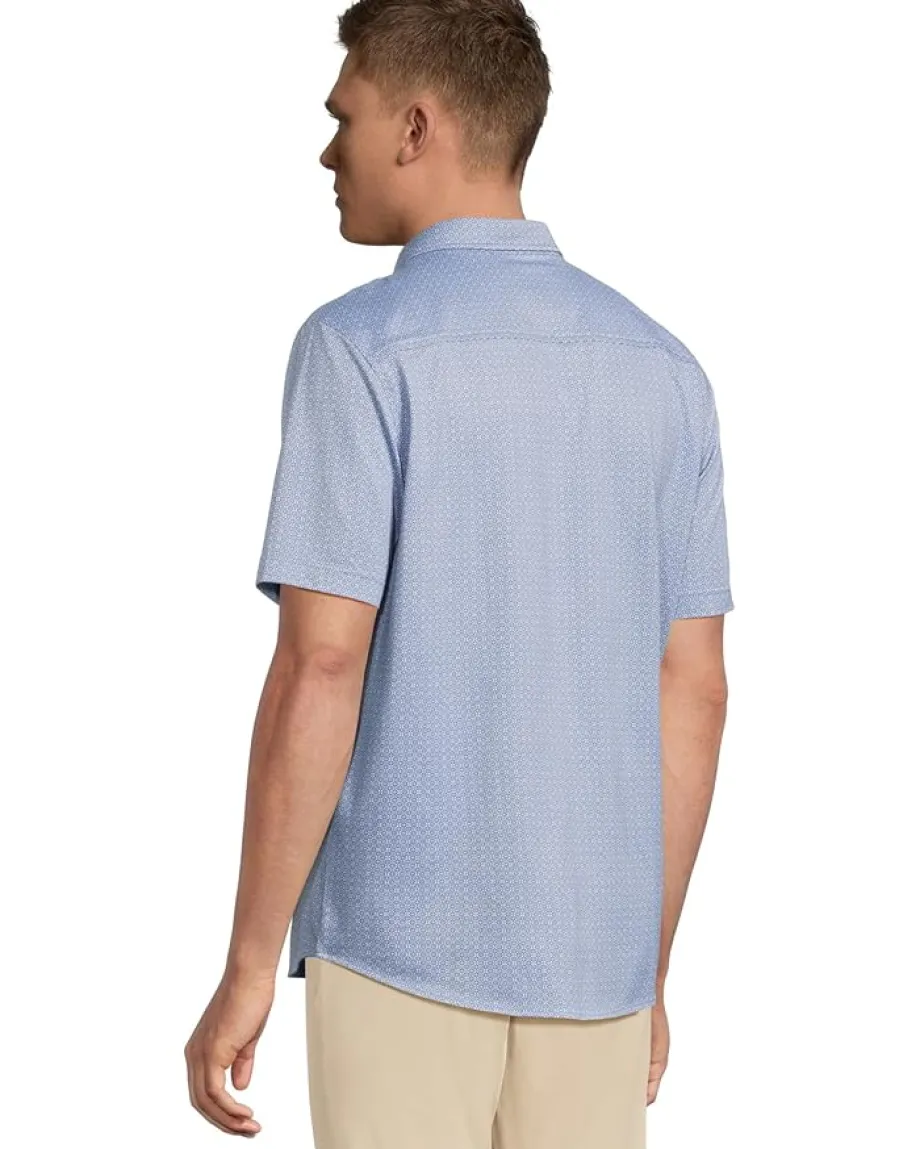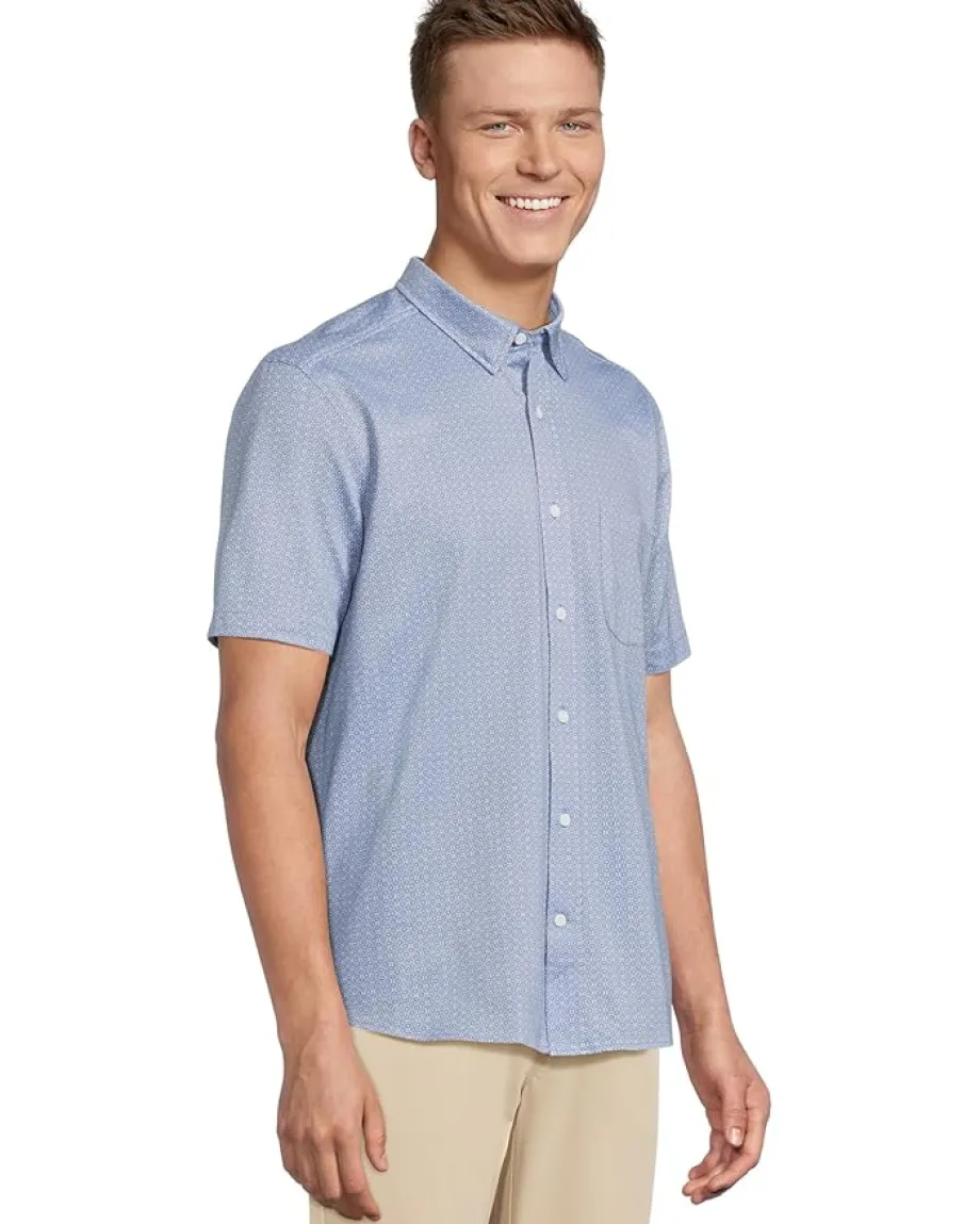 - Add a touch of charm to your wardrobe choosing the Johnston & Murphy® Short Sleeve XC Flex Birdseye Geo Print Button Front Shirt. The everyday print on a subtle birdseye texture gives this shirt a unique look that stands out from the rest. Made with lightweight and breathable fabric, this shirt is perfect for all-day wear. The four-way stretch technology ensures a comfortable fit, while the hidden button-down collar adds a touch of sophistication. Complete with short sleeves, a chest patch pocket, and a shirttail hem, this shirt is a versatile addition to your wardrobe.