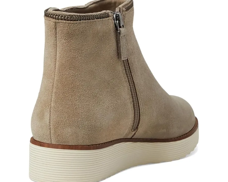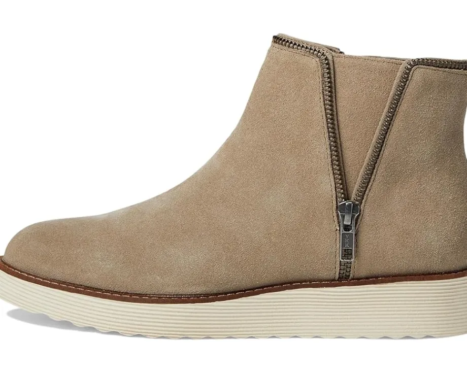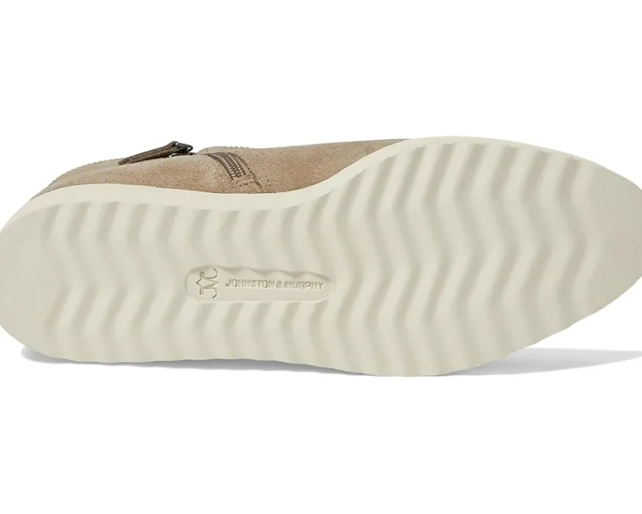 - Charm meets elegance with this Johnston & Murphy® Mitzi Zipper Bootie featuring a low-top profile and soft almond toe silhouette. The footwear has suede upper construction with skeletal leather and microfiber lining, and cushioned, leather-covered footbed for all-day comfort.