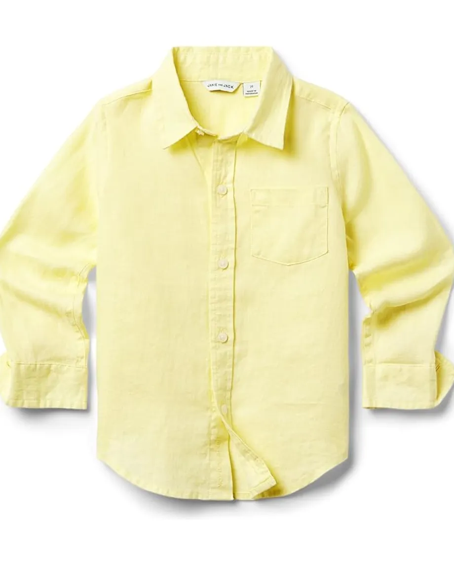 - Let your little one slay a stylish look by wearing the Janie and Jack® Linen Roll Up Shirt. The classic-fit shirt has a collared neckline, long sleeves with roll-up design, front button closure, left chest patch pocket, and a curved hemline. Pair this shirt with shorts or a jeans and a shoes for a classy look.