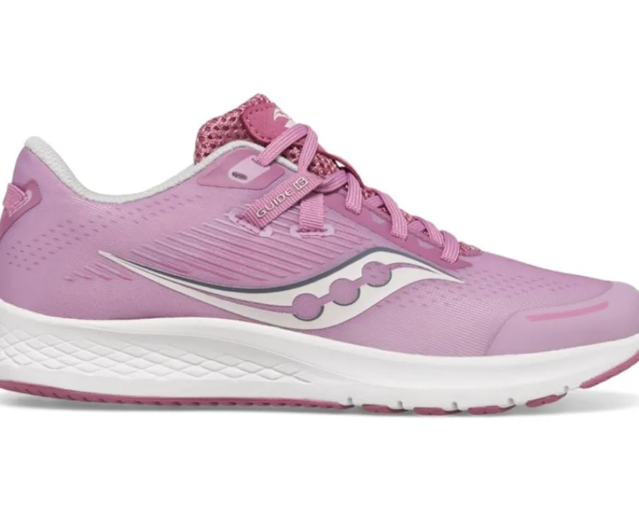 - Give your feet added comfort and a sporty feel wearing Saucony® Kids Guide 16 Sneakers that come with a lightweight & breathable one piece mesh upper, traditional lace closure, and a no-sew material application for a lightweight, seamless and flexible feel. The sneakers feature recycled PET linings, medial side post for stability, lightweight EVA midsole, FORMFIT performance contoured footbed, and a removable textile footbed with recycled poly sock construction.