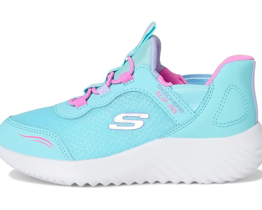 - Effortless comfort comes with the SKECHERS® KIDS Skechers Hands Free Slip-Ins, Bounder – Simple Cute 303585N shoes. Designed with an exclusive Heel Pillow™ that holds the foot securely in place, these sneakers feature a mesh upper with stretch laces, Skechers adaptive closure, and a cushioned Skechers Air-Cooled Memory Foam® insole. The cotton lining of these shoes keeps your kid’s feet cool and comfortable. Machine washable and durable, these low-top sneakers are ideal for your kid’s everyday wear.