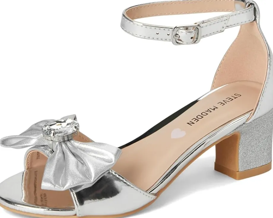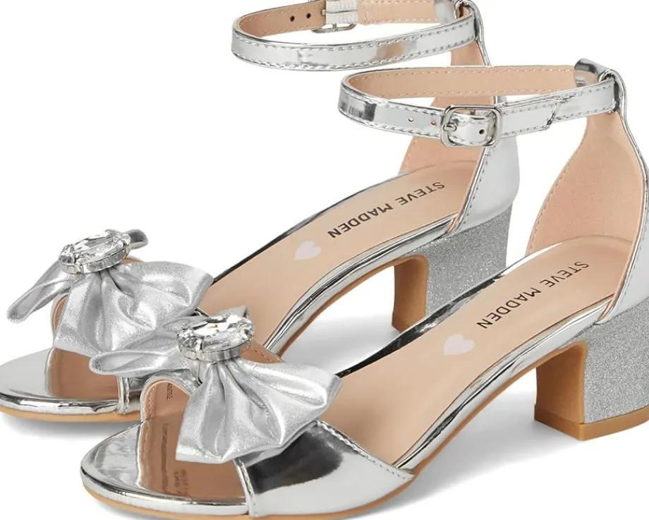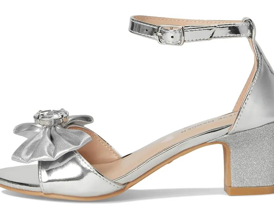 - The Steve Madden® Kids Clair heeled sandals feature a stylish, minimalist design that is on-trend and perfect for dressing up any outfit. It features a block heel with a bow detail on the toe strap. The stylish heels are constructed with rubber upper, lining, and insole.