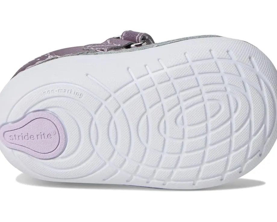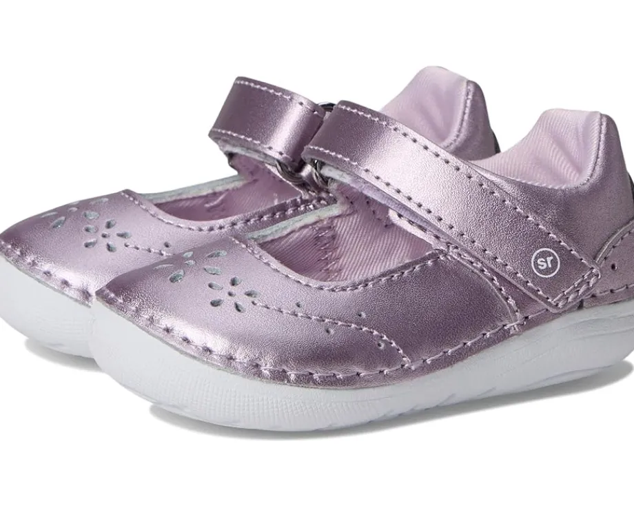 - Let your kid embark on their first step journey with style and comfort wearing the Stride Rite® SM Faye shoes. The hook-and-loop strap of these shoes offers a secure fit. They are made of a leather upper, rubber insole, and cotton lining. Featuring a classic Mary Jane silhouette and stylish design, these flat shoes add a touch of charm to any outfit.