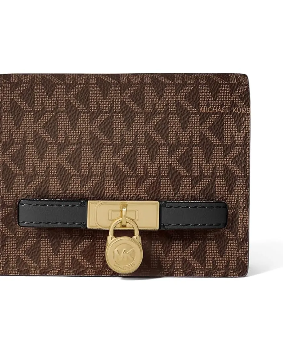 - Keep your cards and cash stored securely wearing MICHAEL Michael Kors® Hamilton Moderne Small Compact Wallet. Crafted with polyvinyl chloride, the wallet features a snap-button closure, eight internal pockets, and credit card slots.