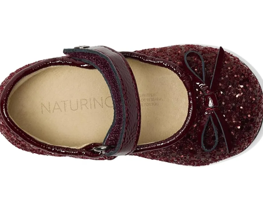 - Donne a cute look by complementing your little one’s outfits with the pretty Naturino® Naturino Ballet Flats. The round-to flats feature a faux leather upper beautifully detailed with allover glitter or metallic details and a bow motif. The Mary Jane silhouette with a hook-and-loop strap allows easy on/off.