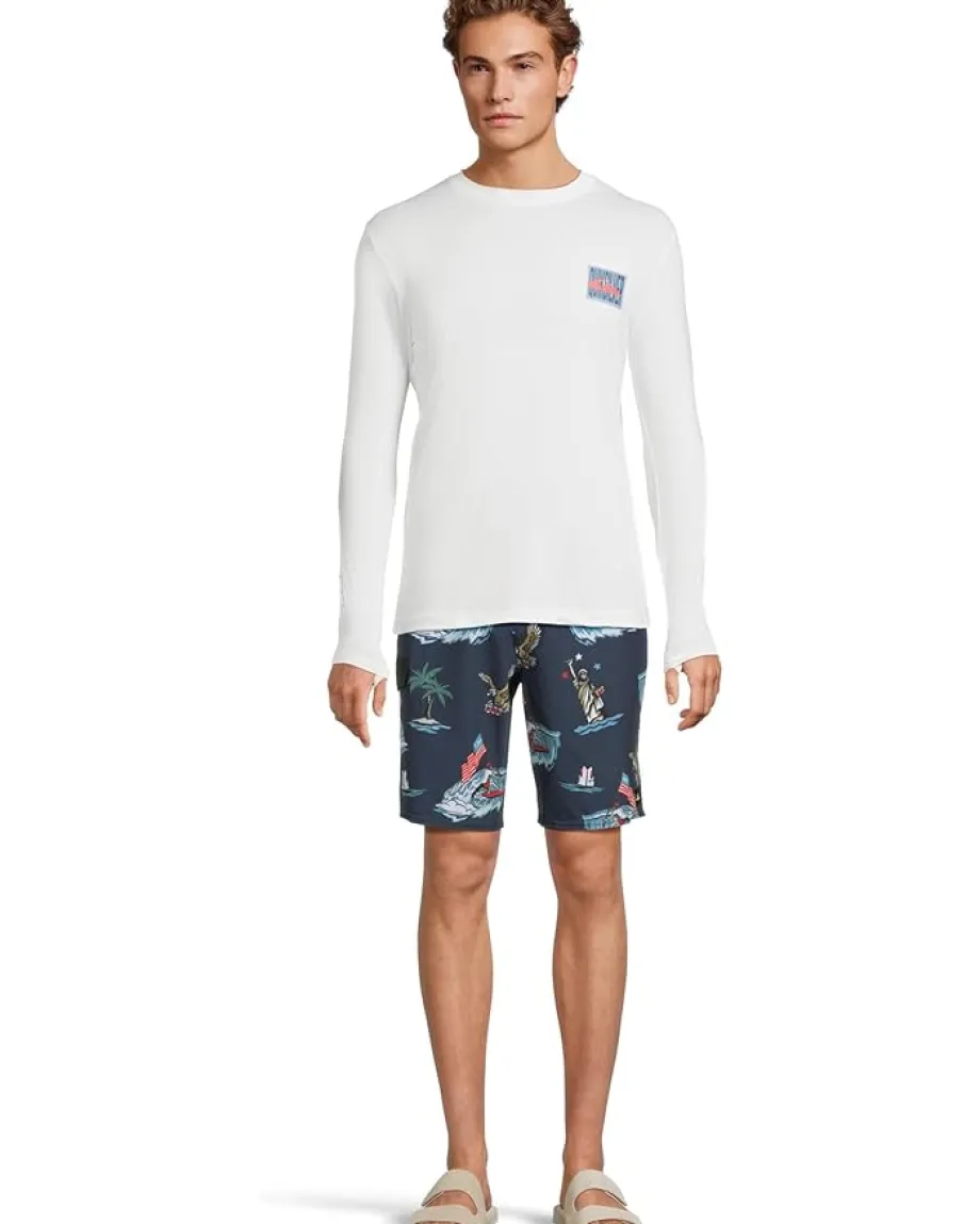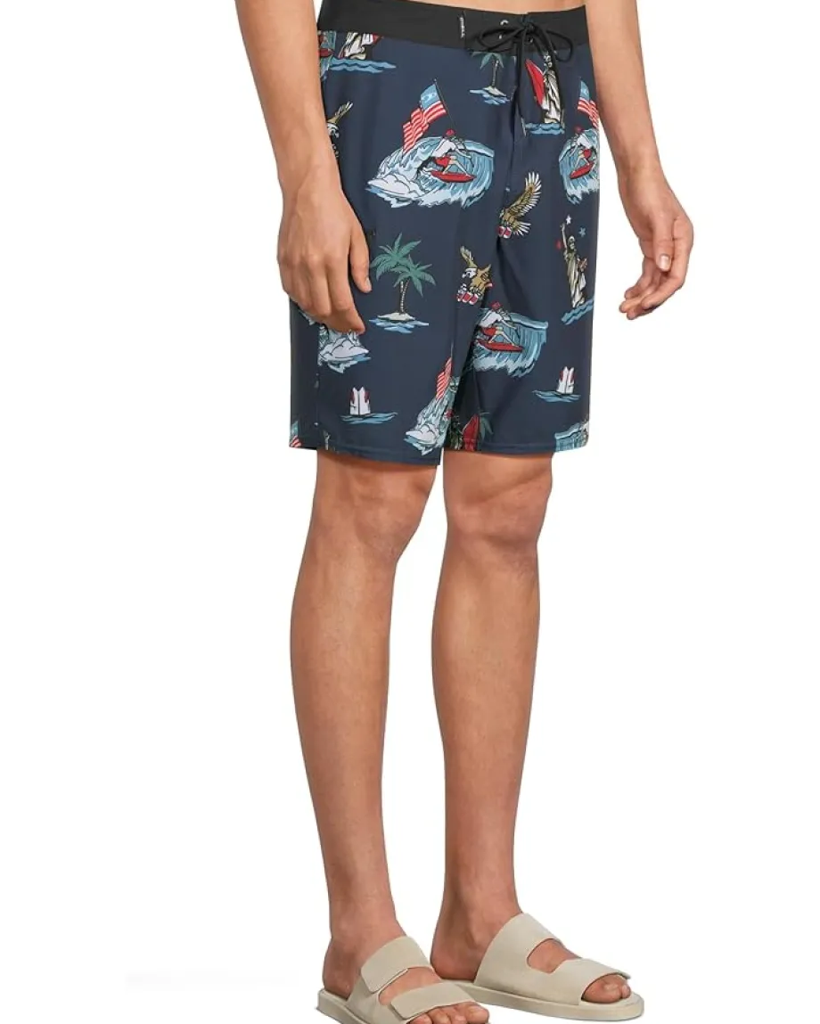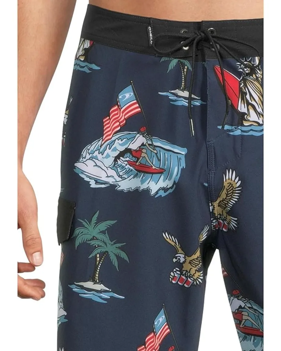- The O’Neill® Lennox USA 20″ boardshorts are built for the modern adventurer who craves comfort, performance, and standout style. Featuring bold printed designs and a secure drawstring closure, these trunks are all about making moves with confidence. Crafted from O’Neill Blue four-way stretch fabric infused with recycled fibers, they offer eco-conscious flexibility that moves with you. Stay light and dry thanks to O’Neill Hyperdry DWR technology, designed for ultra-fast water resistance. The side pocket adds convenience, while rash-free Hyperthread ensures smooth, chafe-free wear from sunrise surf to sunset chill.