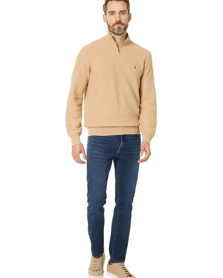 - A rib-knit mock neckline adorns the look of the Polo Ralph Lauren® Mesh-Knit Cotton 1/4 Zip Sweater. This high-quality sweater features a quarter-zip placket design which offers a fashionable look.