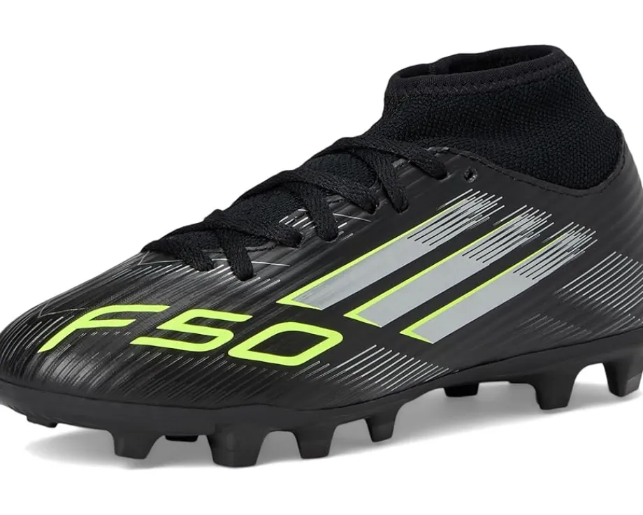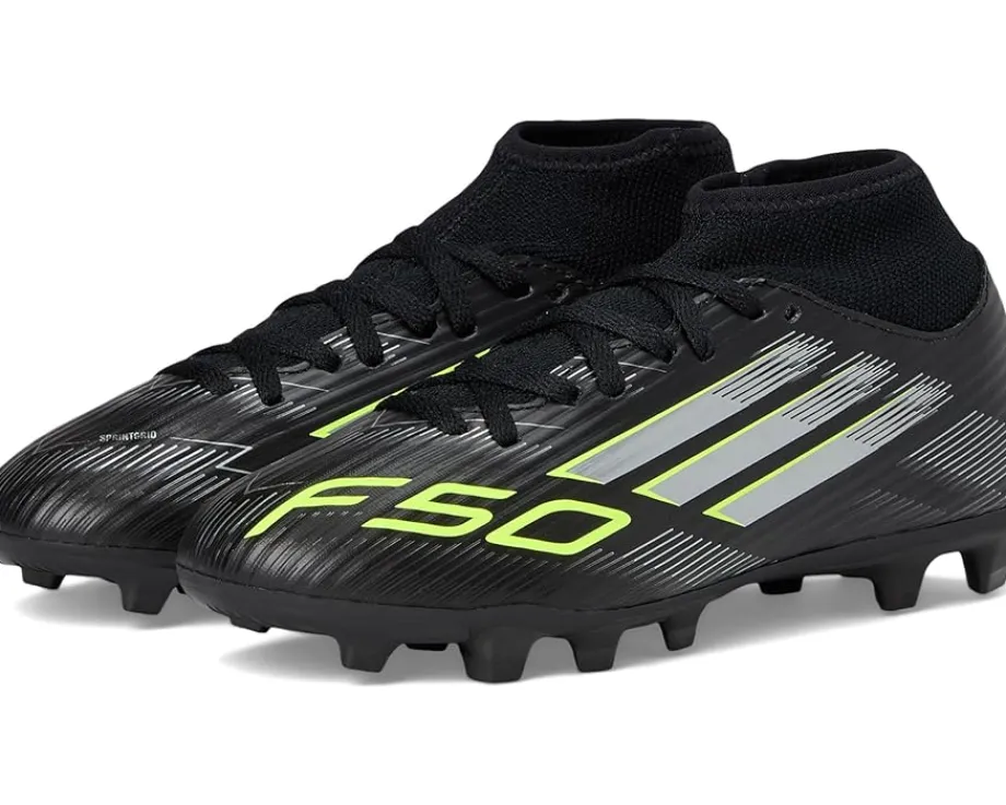 - Let your kid find their feet to truly express themselves on the field wearing the adidas® Kids F50 Club Firm Ground/Multi Ground Cleats. These juniors’ Club soccer cleats keep your kid comfortable on the move with a supportive, mid-cut Fiberskin rubber upper with a Sprintgrid print. They are designed with a synthetic rubber insole and lining. The lace-up closure of these shoes offers a secure fit. Turn them over and you’ll find a firm multi-ground synthetic rubber outsole that supports speedy play on firm ground and artificial grass pitches.
