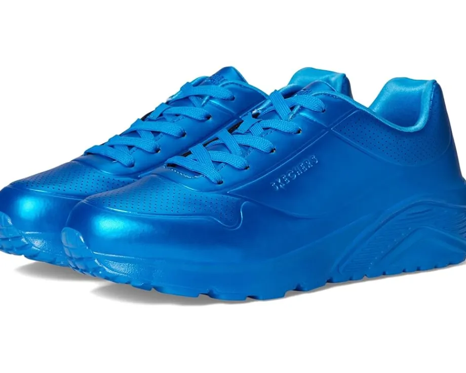 - Let your kiddo draw all the attention wearing the super vibrant SKECHERS® KIDS Uno Lite 310385L Sneakers. The colorful footwear has faux leather upper embossed with jewel tone and Jen Stark multi-drip printed design that offers an appealing look.