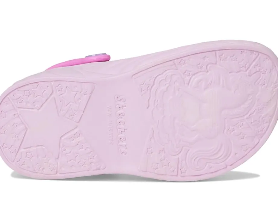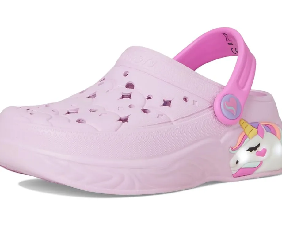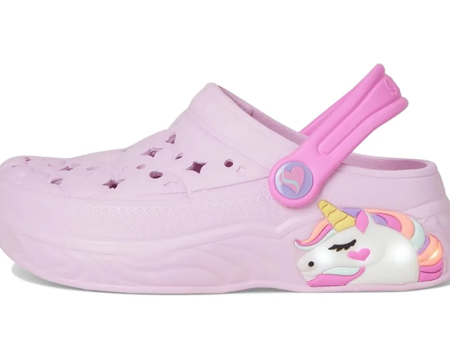 - Step into magical unicorn style with SKECHERS® Foamies: Unicorn Dreamer. This comfort clog features a flexible perforated ethylene vinyl acetate upper with light-up unicorn midsole detail and a convertible heel strap.