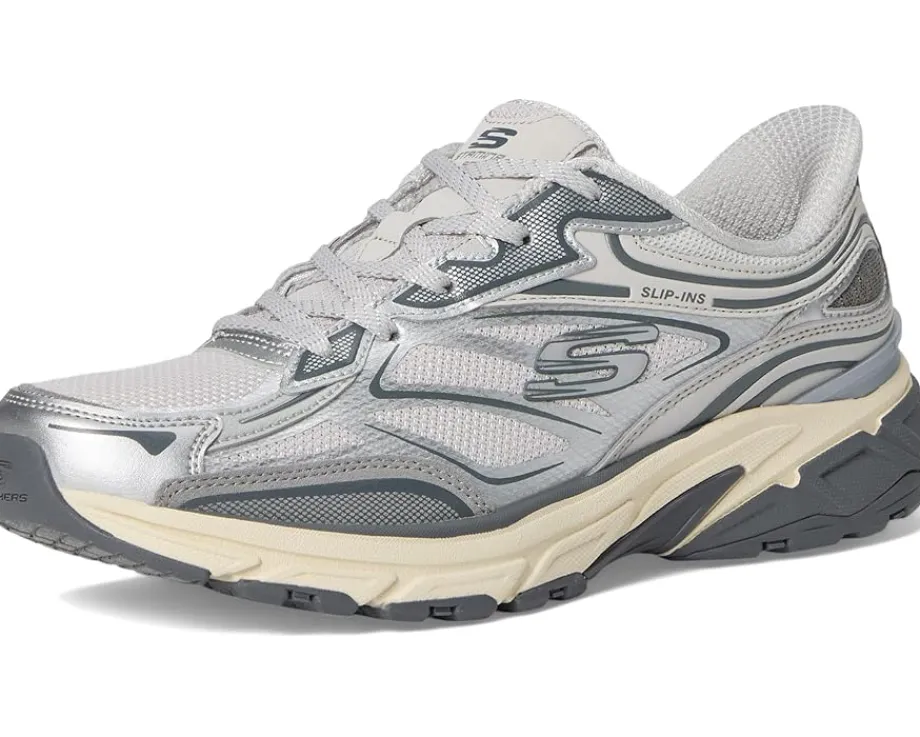 - Step out in sporty style and effortless comfort with the SKECHERS® Stamina Sport Hands Free Slip-Ins shoes. Designed with an exclusive Heel Pillow™ that holds your foot securely in place, these sports shoes feature a mesh upper with leather and synthetic overlays and adjustable laces. They are crafted with a cushioned Skechers Air-Cooled Memory Foam® insole for all-day comfort. The Skechers Hands Free Slip-ins® design ensures an easy fit. These casual joggers feature a Skechers® logo detail and serve as a great choice for your everyday runs and outdoor rides.