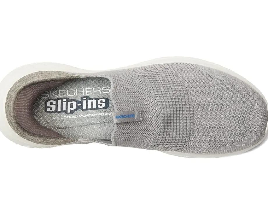 - Step into easy-wearing style and comfort with Skechers Slip-ins: Ultra Flex 3.0 – Smooth Step. Featuring a Stretch Fit engineered knit upper with a Skechers Slip-ins heel panel and a cushioned Skechers Air-Cooled Memory Foam insole. footbed.