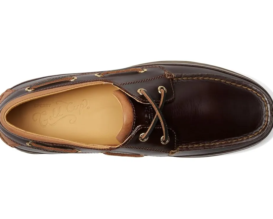 - Polish off any look with the easy style of the genuine leather Sperry® Gold Cup Boat shoes. The rawhide laces with our 360° Lacing System™ offer a customized fit. The rich lambskin lining, Ortholite® insole, and EVA foam midsole offer lightweight shock absorption and all-day comfort.