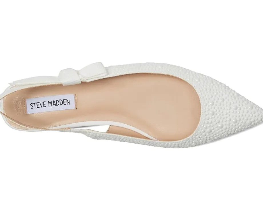 - Timeless style made easy in the Steve Madden® Olsen: Indulge in effortless elegance with these chic ballet flats. The textile upper and leather lining offer supreme comfort, while the rubber insole and synthetic rubber outsole ensure durability. The stylish slingback buckle closure and delicate bow detail add a touch of charm and femininity.