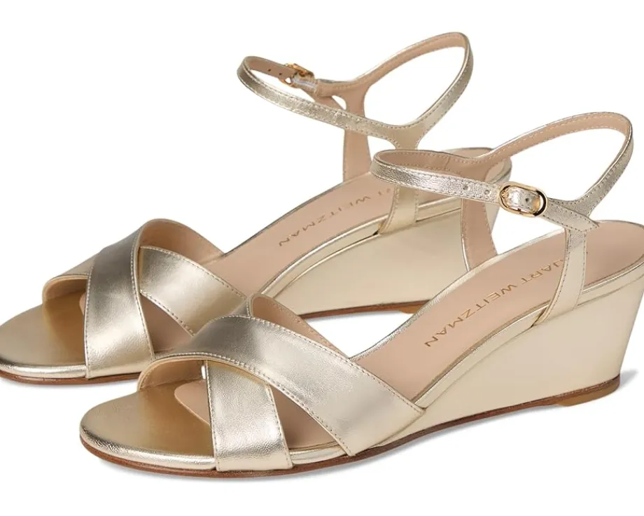 - Make a statement choosing the Stuart Weitzman® Dayna Demi Wedge heels. Crafted with stylish denim upper and luxe mestizo leather lining, these sandals are both fashionable and versatile. The leather insole offers premium comfort, while the open toe design adds a playful touch. Complete with wedge heels, these sandals will effortlessly elevate your look.