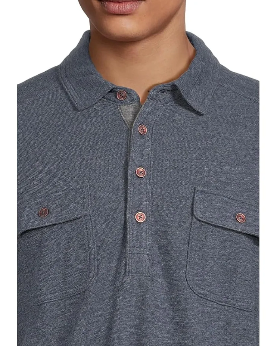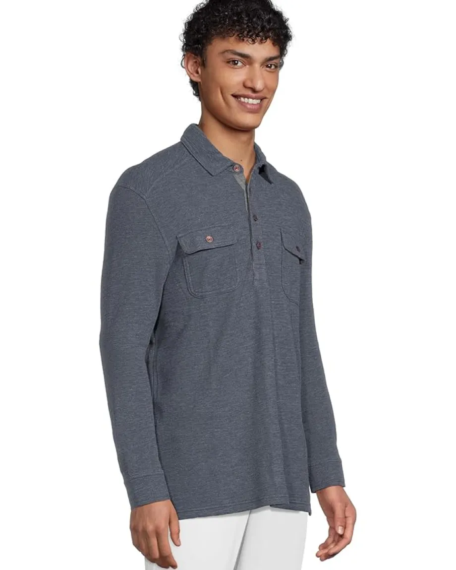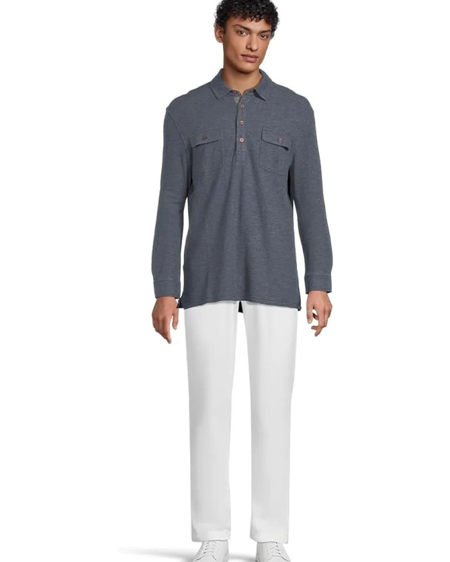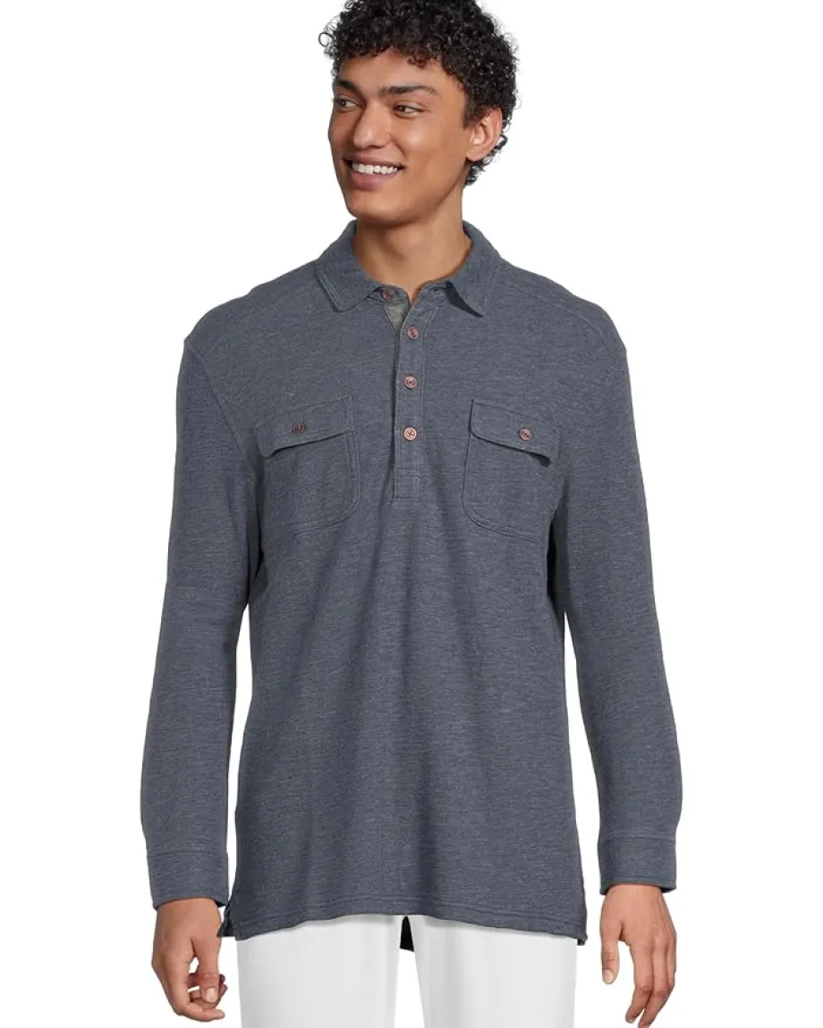 - Effortless style meets all-day comfort in the Tommy Bahama® Penn Cove Polo Long Sleeve, the modern essential your wardrobe’s been waiting for. Designed in a solid heather double-face fabric, this polo blends refined texture with laid-back charm. The regular fit ensures ease of movement, while the Henley neck with a four-button placket offers versatile styling, wear it open for a relaxed vibe or buttoned for a sharper look. Two chest pockets add a touch of utility, complemented by rivet and bartack details for subtle ruggedness. The cuff plackets and long sleeves transition seamlessly from cool mornings to breezy evenings, making it a pull-on piece you’ll reach for year-round.