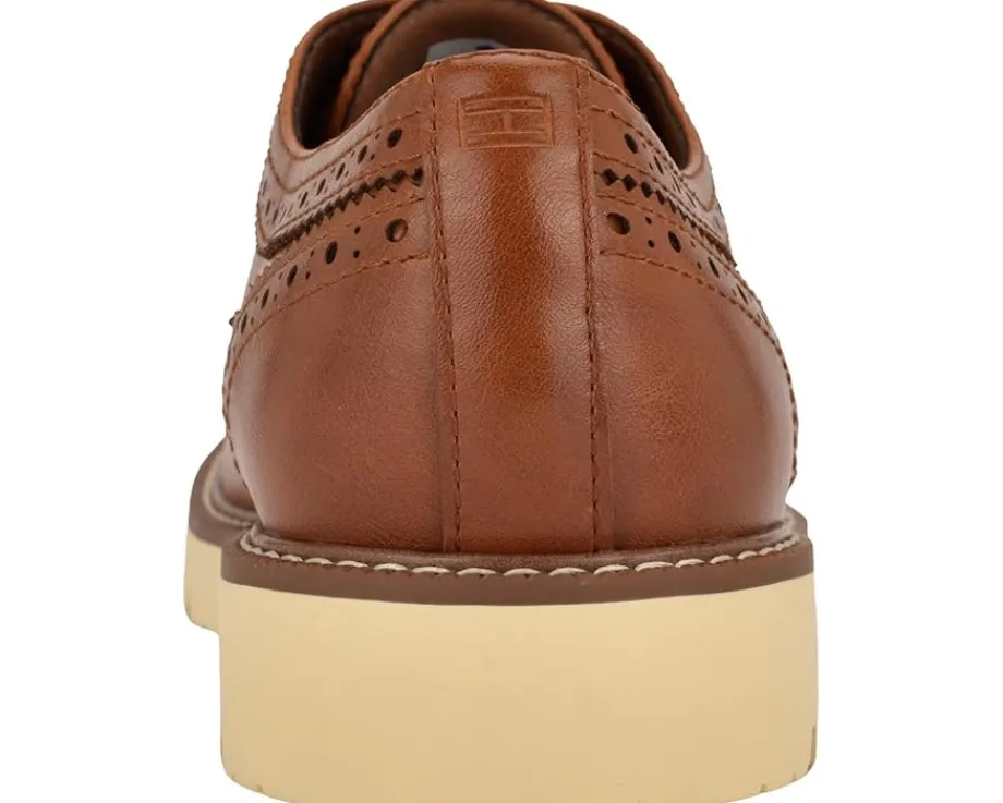 - The Tommy Hilfiger® Trenity shoes are a hybrid oxford with a wingtip toe silhouette, broguing along the sides and back of the shoe, and a casual synthetic rubber outsole. The cushioned memory foam footbed of these loafers is just an added feature for comfort while the polyester lining provides long-lasting comfort and breathability. These dress shoes are designed with faux leather upper with lace-up closure. Perfect to pair with your formal looks and party styles, these cushioned shoes work for different occasions.